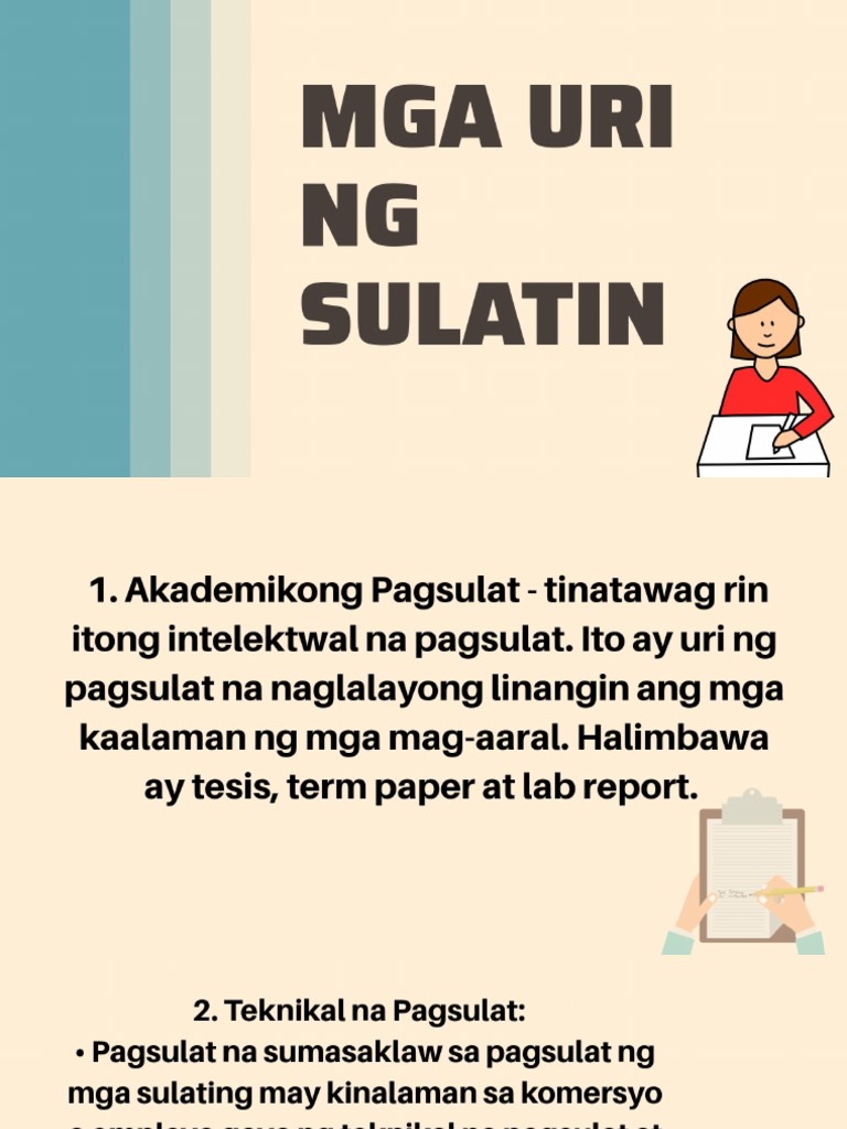 Mga uri ng pagsulat pdf. Ginagamit mo ang halaman puno at bunga nito. The student chooses from a group of three verbs. Ang mga halimbawa ay ang mga sumusunod.