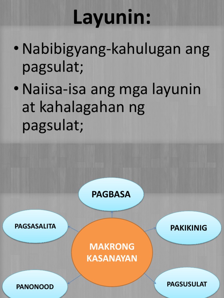 1 See answer galagsaway galagsaway Answer. Ano ang kahulugan ng pagsusulat batay sa iyong binasa. Sa mga malrong kasanayang pangwika alin dito ang kailangang linangin at hubuging lubos.