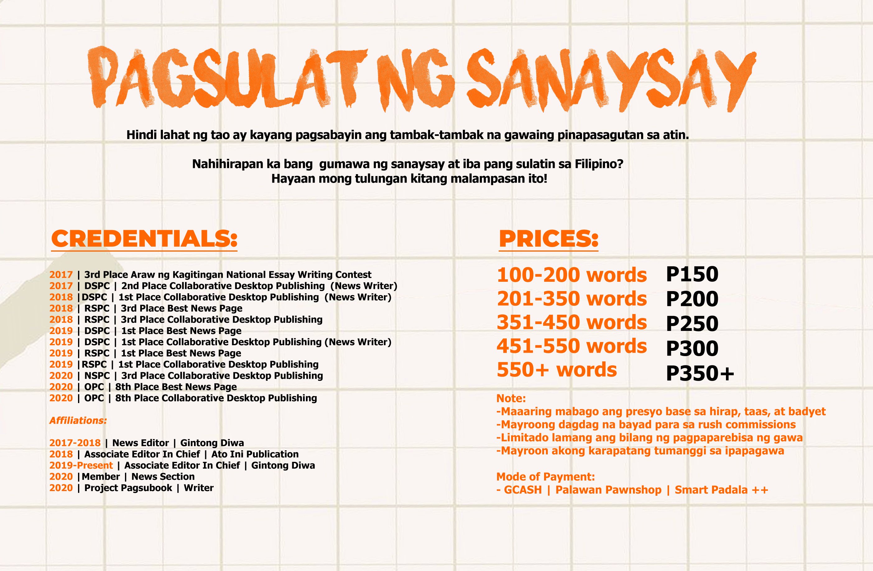 Killua Comms Open On Twitter Huhvier Hello I Am A Student Saving Up For College Commissions Open For Filipino Modules Essay Sanaysay Talumpati Speech Poem Reflection Position Paper Argumentative Essay And